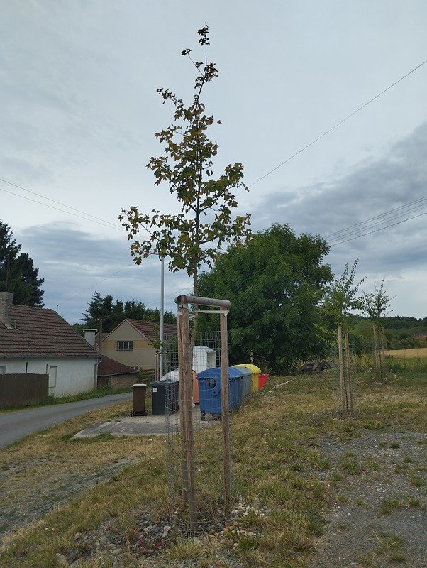 Při kontrole jarní výsadby, která proběhla 24.7.2025, bylo zjištěno, že stromům i keřům se daří převážně dobře. Dřeviny jsou umístěny na návsi, kde je podloží spíše méně kvalitní, což snižuje konkurenci okolní vegetace.