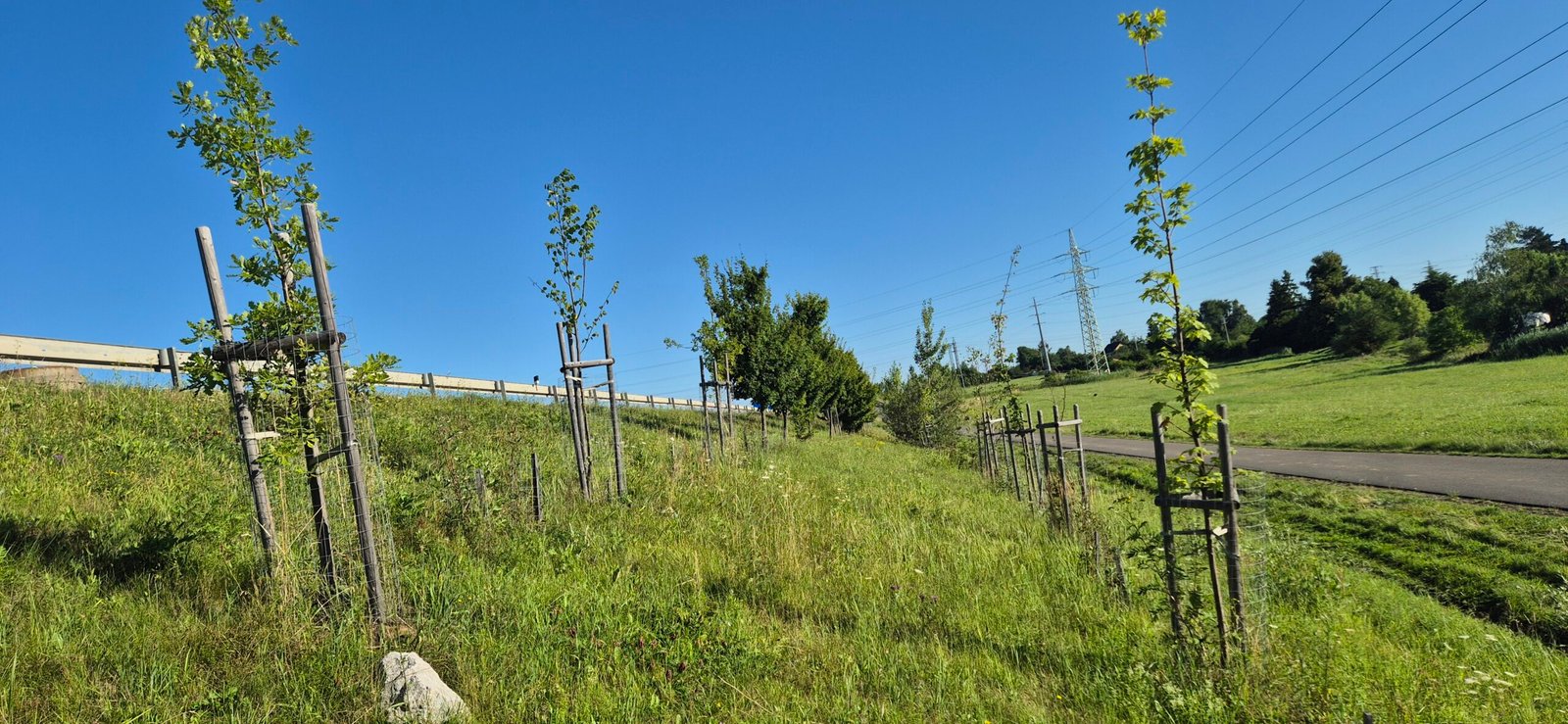 Stav stromů byl při kontrole 1.7.2025 vyhodnocen jako dobrý. Ve spolupráci s obcí byla projednána potřeba zálivky s ohledem na náročné letní teplotní podmínky a byly upraveny příliš utažené úvazky.