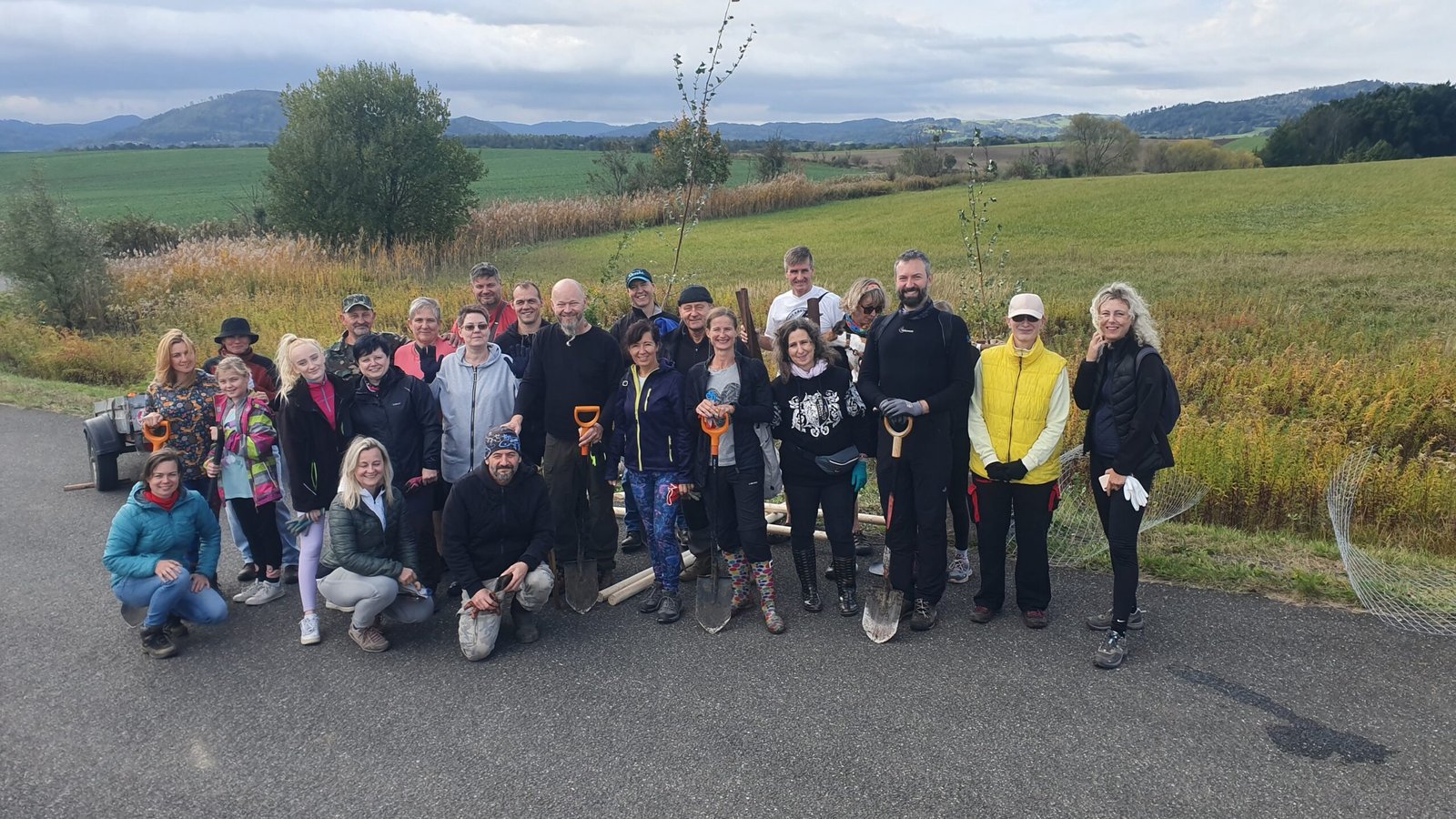 Podzimní den byl zalitý sluncem a na místě se sešlo téměř třicet dobrovolníků. Společně se pustili do sázení stromů, které mají před sebou dlouhý život a důležitou roli v krajině. Nová alej nabídne v létě příjemný stín, v otevřeném prostoru poslouží jako větrolam a zároveň pomůže chránit okolní půdu před erozí.